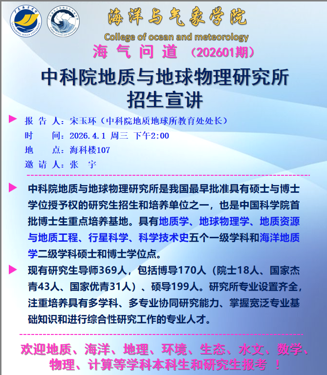 【学术会议通知】av在线看 “海气问道”(202601期)