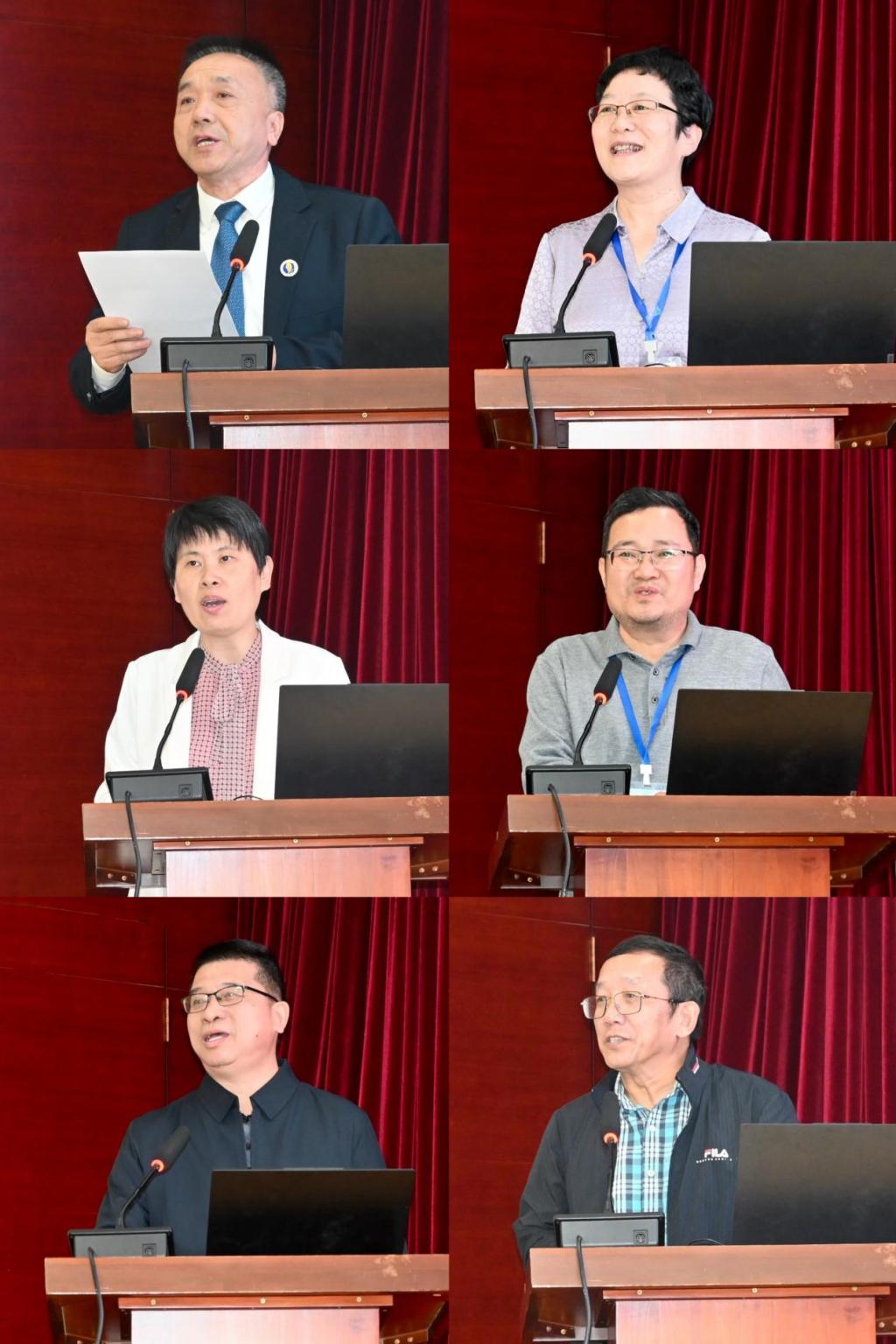图2. 宁凌副校长、黄菲副院长致辞;谢玲玲院长报告学院发展情况、李春主任报告共同体建设情况、邱新法教授做大会特邀报告、徐建军教授做南海海洋气象研究院发展报告(顺序从左到右、从上到下)。