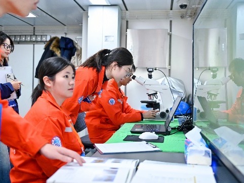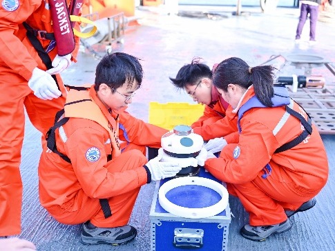 总决赛期间,代表队登上6000吨级“东方红3”科考船,与来自中国海洋大学、厦门大学、中山大学、河海大学等全国10支参赛队伍同台竞技。本次大赛涵盖物理海洋、海洋化学、海洋生物和海洋地质四大方向,设置甲板和船上实验室两个考核板块。甲板操作包括SBE911plus CTD观测及采水、化学水样现场分取、箱式采泥器表层沉积物取样、浮游生物垂直拖网以及海床基组装等5项内容;实验室内考核包括海水pH测定、浮游植物鉴定(种水平)、表层沉积物描述及船载观测仪器认知共4项内容。考核内容兼顾实践与理论,覆盖面广、工作量大、操作要求高,且需在5.5小时内完成全部项目;同时受当日4级海况影响,整体难度进一步加大。av在线看