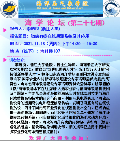 【学术会议通知】海学论坛(二十七期)
