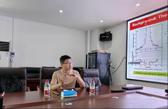 全祺研究员的报告回顾了大洋和边缘海海洋动力学上的差异,系统梳理了地形、平均流、底摩擦对准地转运动垂直模态的影响。报告介绍了全祺研究员近年来通过观测和理论分析,揭示了南海北部陆坡区,海底地形对准地转运动垂直模态的调整所导致的向表强化现象,该研究进一步完善了我们对能量垂直分布和波动信号传播过程的理解。